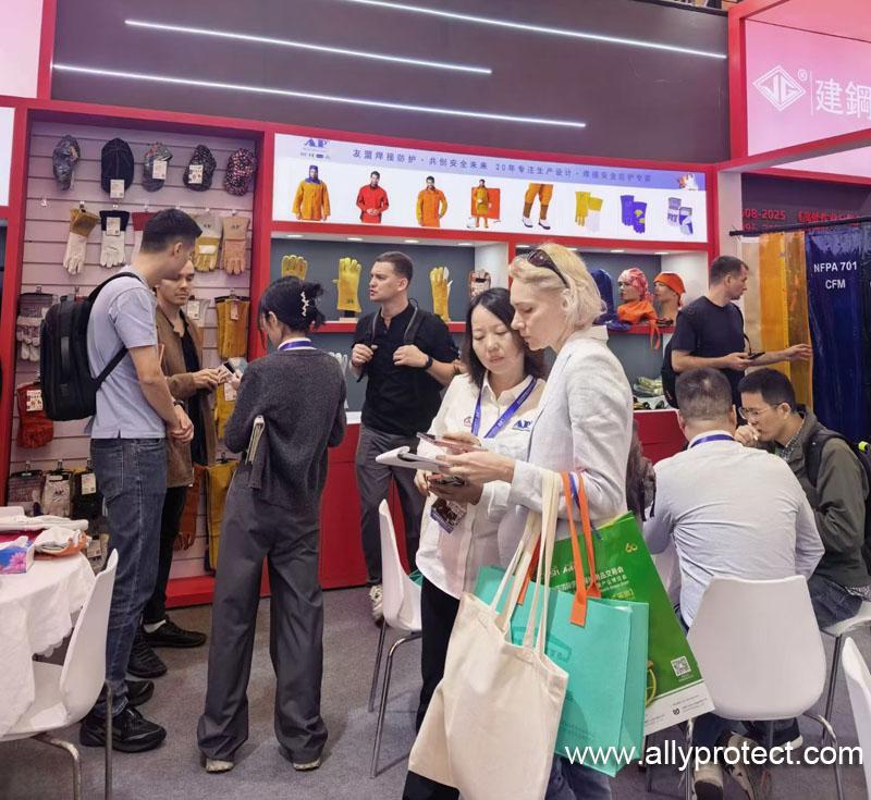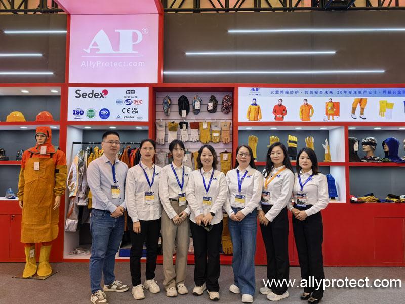 展會(huì)現(xiàn)場,友盟防護(hù)以紅色為主色調(diào)的展位格外醒目,品牌標(biāo)識(shí)“AP(AllyProtect)”與“友盟焊接防護(hù)·共創(chuàng)安全未來”的標(biāo)語熠熠生輝,直觀傳遞出品牌專注焊接防護(hù)裝備研發(fā)生產(chǎn)20年的專業(yè)底蘊(yùn)。展位內(nèi),系列焊接防護(hù)手套、防火阻燃防護(hù)服、防護(hù)面罩等核心產(chǎn)品整齊陳列,從基礎(chǔ)防護(hù)裝備到高性能定制產(chǎn)品,全面覆蓋焊接作業(yè)不同場景的防護(hù)需求,每一件產(chǎn)品都彰顯著友盟對(duì)品質(zhì)的嚴(yán)苛把控與技術(shù)創(chuàng)新的深耕。